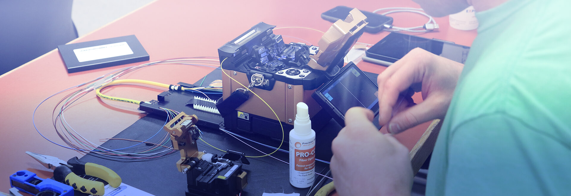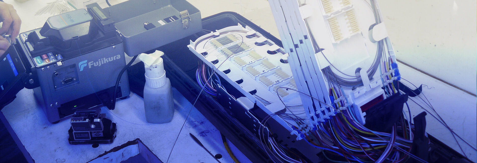 Abertura e fusão em cabos oticos de operadoras de Telecom. Serviços de fusões em fibras ópticas mono-modo e multimodo com alinhamento pelo núcleo.